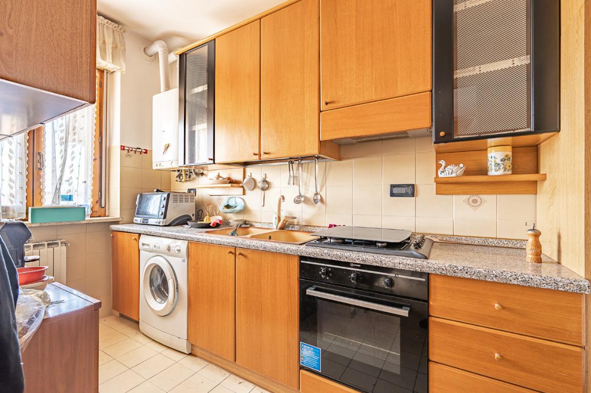 L'immobile proposto si trova in Via Adria, in una zona residenziale tranquilla e ben abitata, servita di negozi e servizi di prima necessita e ben collegata ai mezzi pubblici e alle principali via di comunicazione. Il bilocale è situato in uno stabile degli anni '80 in buone condizioni. L'appartamento si apre su una zona giorno accogliente, ben organizzata, con accesso diretto al balcone che garantisce ottima luce naturale e uno sfogo esterno vivibile. La cucina è separata, pratica e funzionale. La camera matrimoniale è spaziosa, facilmente arredabile e anch'essa dispone di accesso al balcone verandato. Il bagno cieco è dotato di box doccia. Sono presenti riscaldamento autonomo e aria condizionata. Completa la soluzione una cantina e un posto auto riservato inclusi, mentre è disponibile anche un box auto a parte al prezzo di €15.000